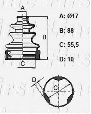 Діаметр шарніра [мм]: 55,5 Для діаметра валу [мм]: 17 Специфікація: Rubber Специфікація: Trilobe CV Boot |